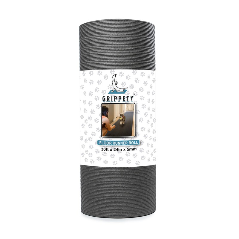 Grippety Floor Runner Roll - 30ft x 24" x 5mm - Anti Fatigue Hallway Runner and Kitchen Floor Mats for House - Non-Slip Floor Runners for Dogs - Cuttable Cabinet, Drawer, Shelf Liner, Charcoal