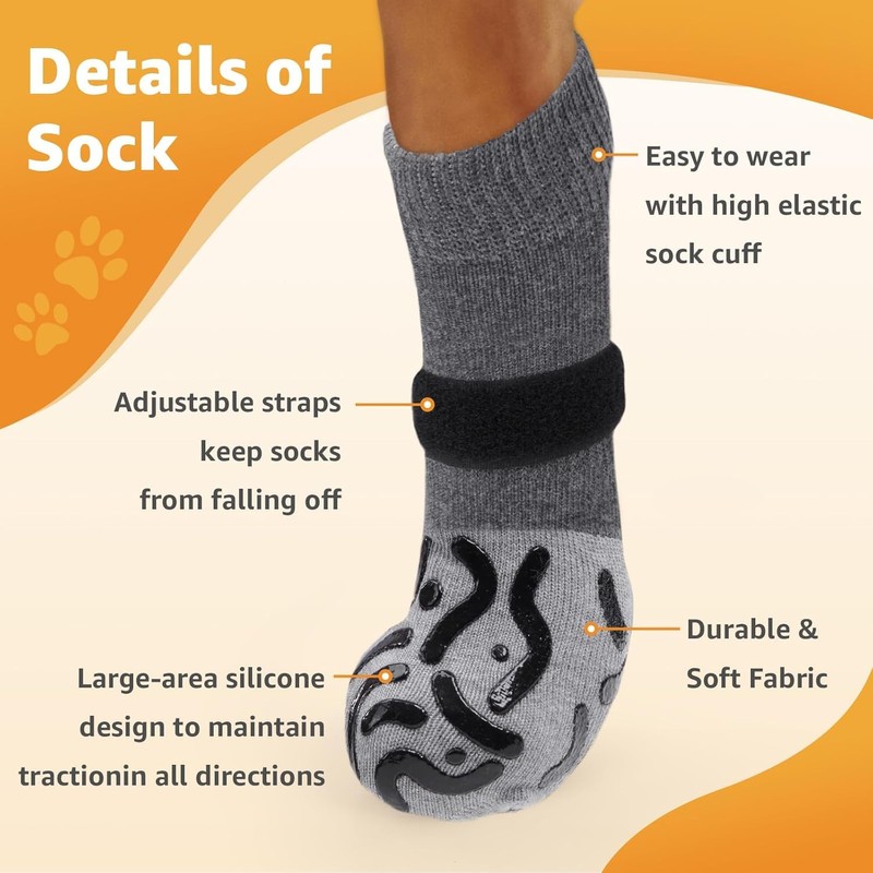 Grippy Non-Slip Dog Socks to Prevent Licking Paws - Strong Traction for Hardwood Floors, Senior Dogs, Paw Protector, Prevent Scratching, Thick Anti Slip Dog Socks (Grey, Medium-Pack of 4)