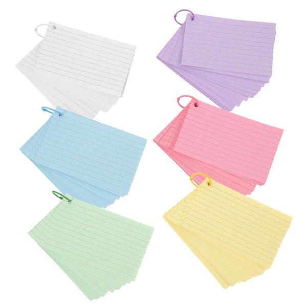 GRIRIW 1 Set Index Cards Rings Lined Study Flash Cards Single Hole Punched Note Cards for English Learning