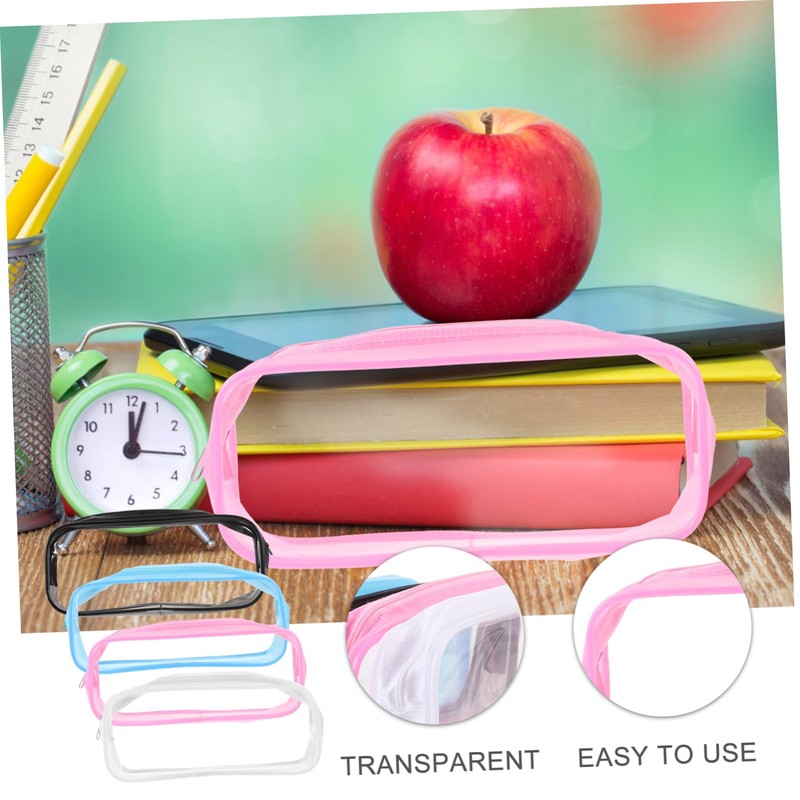 GRIRIW 4Pcs Large Multi Use Pencil Bag Convenient Organizer for Stationery Durable Transparent Makeup Case for School Office Travel