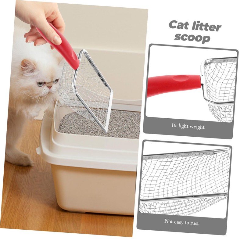 - Metal scoop--made of stainless steel material, this pet litter scoop is safe and longtime use for your pet,mesh cat litter scoop