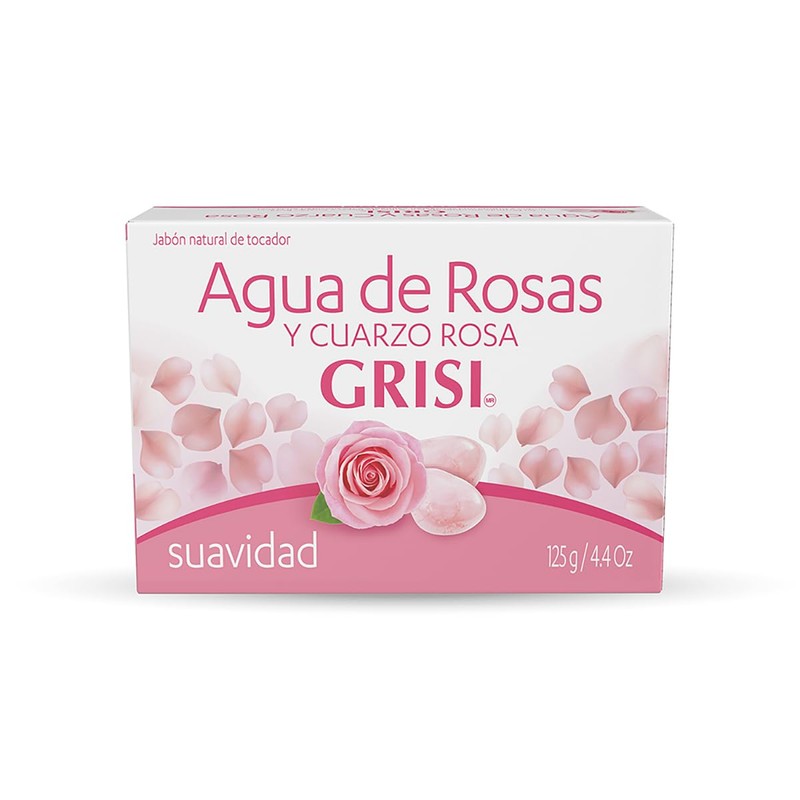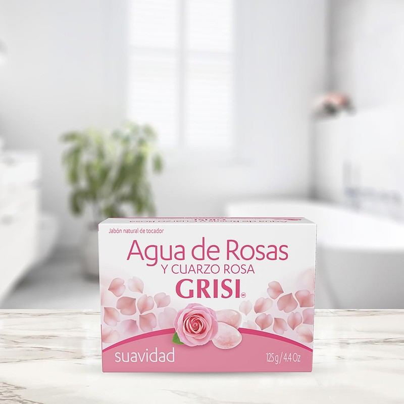 GRISI, Jabón de tocador, Agua de Rosas y Cuarzo Rosa | Jabón en Barra Corporal, 125 gr