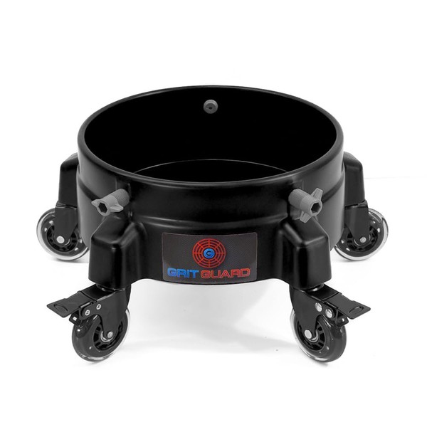 GRIT GUARD Bucket Dolly with Wheels - Rolling Detailing Wash Bucket with 5 Wheels and 2 Locking Casters Compatible with 2.5, 4, 5 and 6 Gallon Buckets (Black, 3" Roller Bearing)