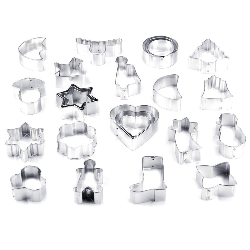 - Cookie cutter starter set. Many cookie cutters including heart, moon, sun, star, bell, snowman, mushroom, angel, elk, gingerbread man, ice crystal, shooting star, boots, rocking horse and much more.