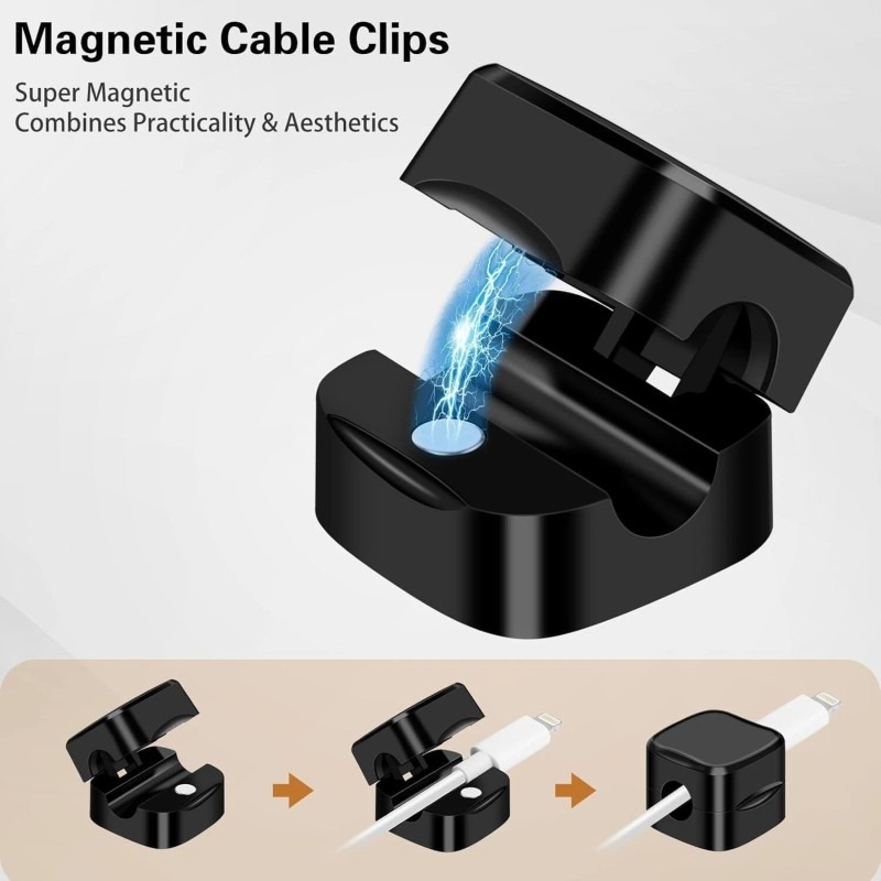 - Magnetic cable clips for secure cable management on desks, walls, and nightstands, perfect for organizing phone chargers and power cords