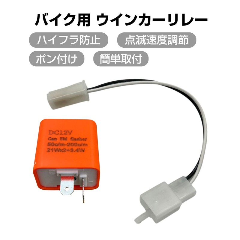 GRmkt Turn Signal Relay Hifra Prevention Motorcycle DC 12v LED 2 Pin Flashing Speed Adjust Conversion Universal Signal Harness Set Orange