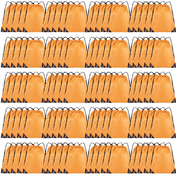 Grneric 100 Pieces Drawstring Backpack Bulk Cinch Sackpack Ployster Drawstring Bags for Gym Party Trip(Orange)