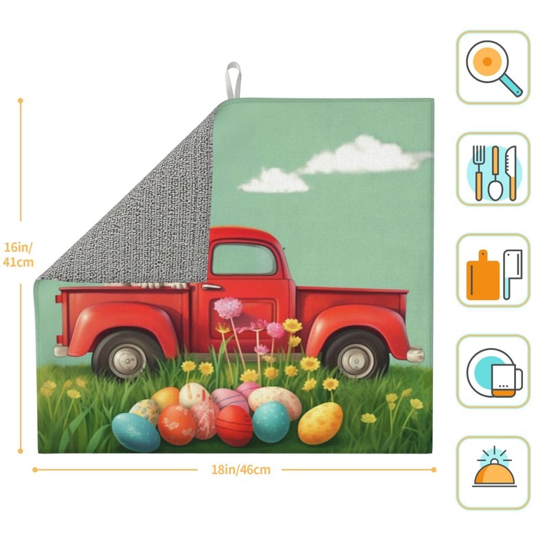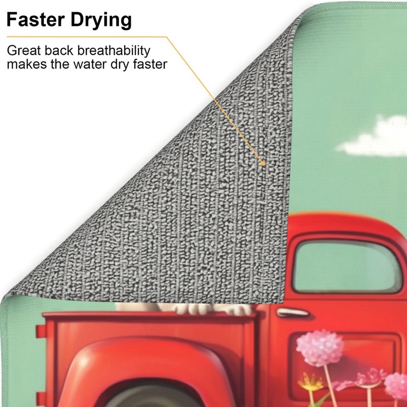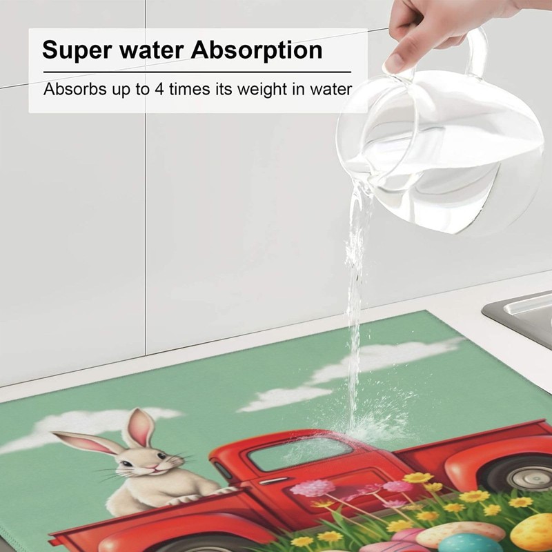 Groamaup Spring Holiday Easter Bunny Truck Cute Rabbit Eggs Dish Drying Mat Protective Pad Protector for Kitchen Counter Countertops 16 X 18 Inch