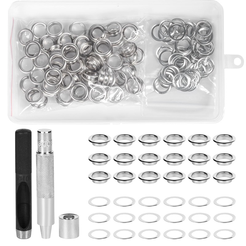 【Wide Application】Grommet eyelet metal tools are widely used for denim, canvas, tarpaulins, tents, awnings and other items made of fabric, or other materials less than 1mm thick.