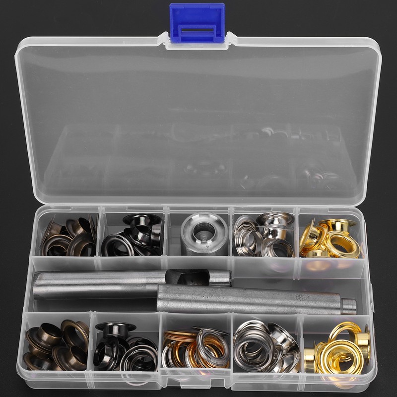 1、Provide economical solutions for canvas, tarps, tents and pool coverings 2、This grommet tool kit is suitable for shoes/shoelaces, clothing, crafts, etc. 3、Easily fix the metal buttonhole in place with a hole cutter and matching mandrel 4、The mandrel surface has a unique design, non-slip and provide a safer grip 5、Come with plastic storage box, suitable for storing small grommet tools, easy to take when sewing