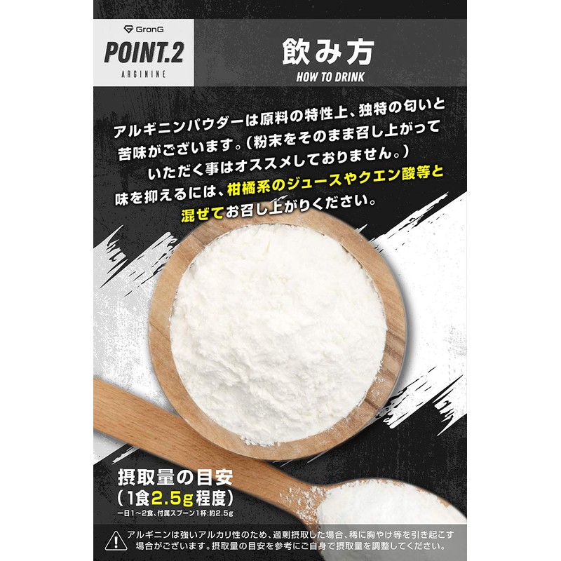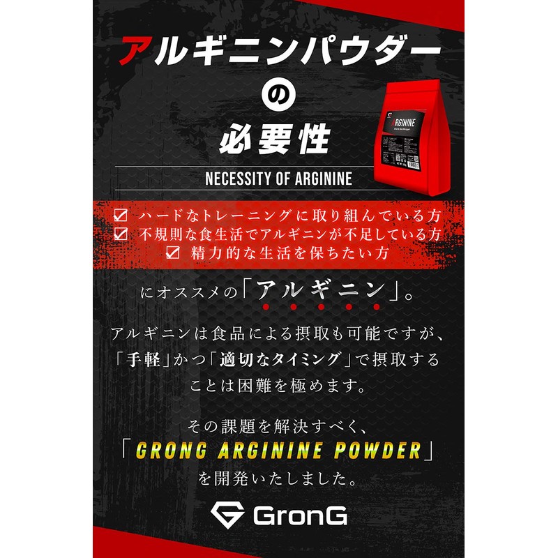 - 【GronG Arginine Powder】ハードなトレーニングに取り組んでいる方、不規則な食生活でアルギニンが不足している方、精力的な生活を保ちたい方にオススメのアルギニンパウダーです。