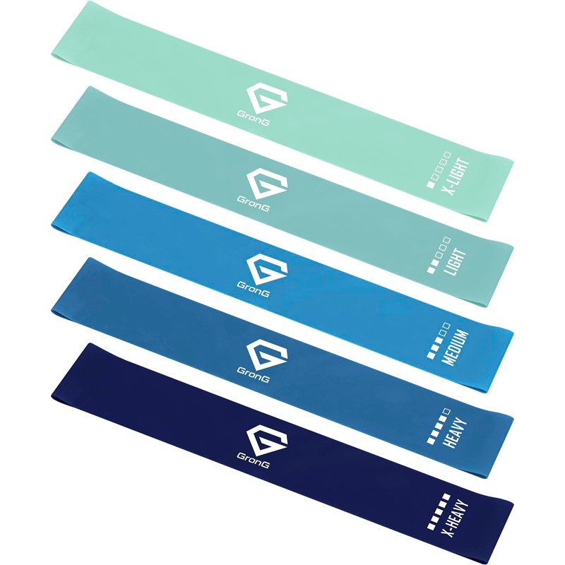 - Material: 100% natural latex; Strength: X-light, light, medium, heavy, X-heavy; Set Contents: 5 tubes by load level, 1 storage bag