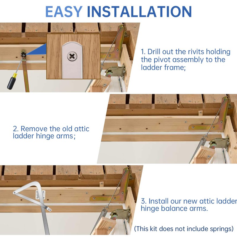 - 【Solve Problems】Replacement for louisville attic ladder kit power arm assembly can provide maximum durability and accurate performance. Replacing the hinge arm of the ladder instead of replacing the whole attic ladder saves you time and money. An economical and effective way to transform your ladder into a new one.