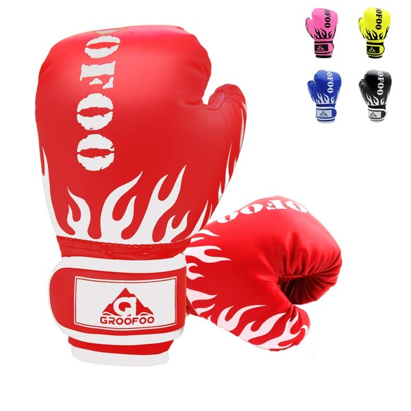 GROOFOO Boxing Gloves for Kids, Punching, Sparring, Premium PU Leather, Lightweight, Martial Arts, Hitting, Karate, Parent-child Training, Stress Relief, Boxers, Special Training, Breathable (Red 4oz)
