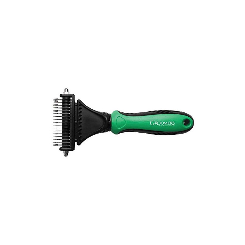 This coat king is the perfect deshedder for those notoriously thick coats, and in particular fluffy double coated breeds. It is a double-duty device which gives the ability to thin and strip coats with a flick of the wrist, featuring 17 blades on one side of the head for thick coats and 9 blades on the other for extremely thick coats. Our new and improved handle features a soft, non-slip material to allow for a firm grip so you can use it with complete control and absolute comfort.