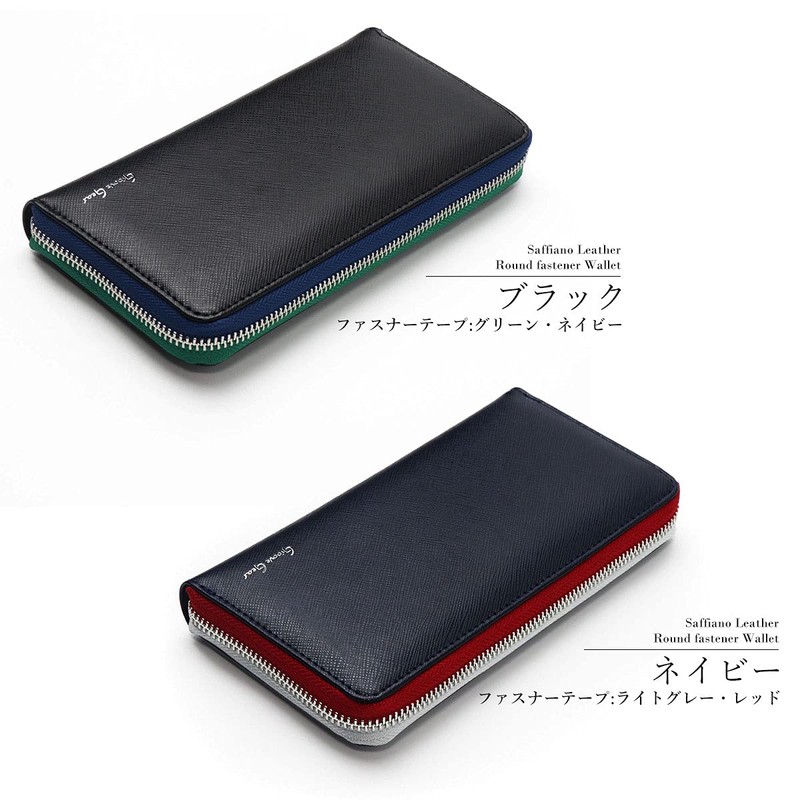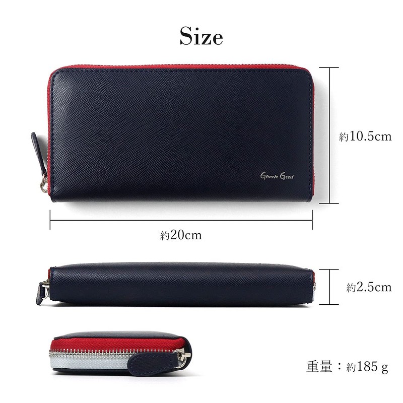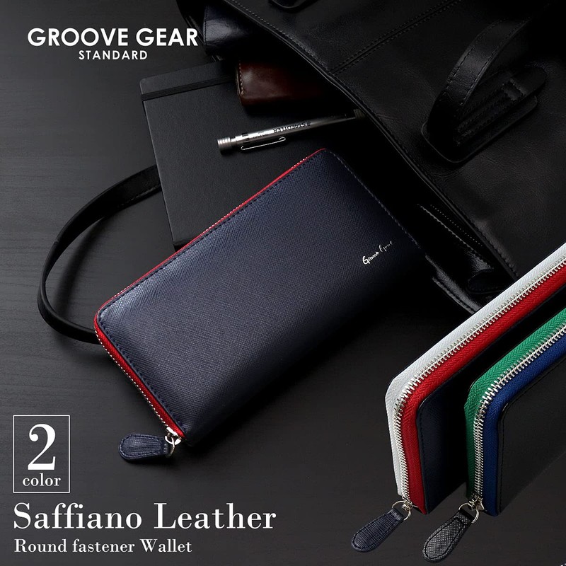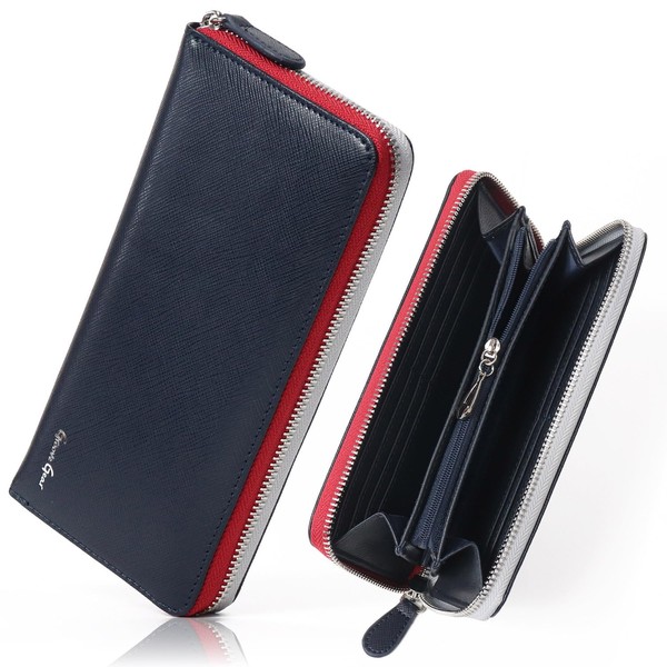 GROOVE GEAR ggs-1016 Men's Long Wallet, Saffiano Leather, Color Tape, Round Zipper, Large Capacity, navy