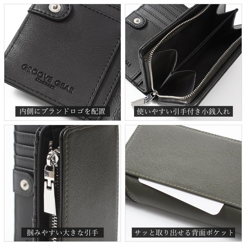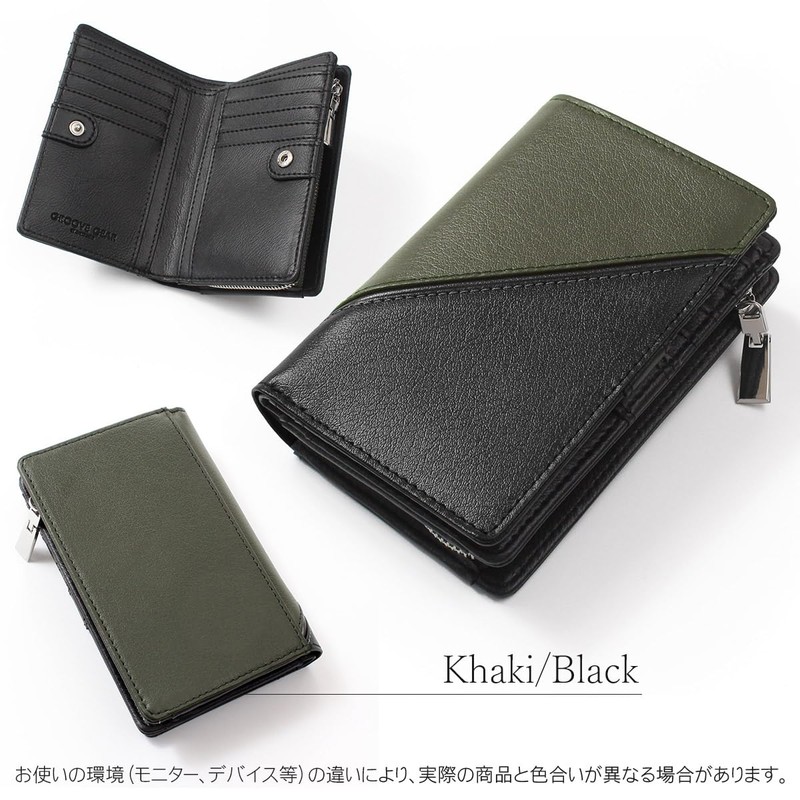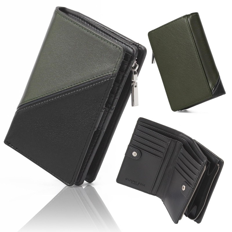 GROOVE GEAR ggs-1044 Men's Genuine Leather Convertible Wallet, Bi-Color Bi-fold Wallet, Mini Wallet, Genuine Cow Leather, Gift, khaki/black