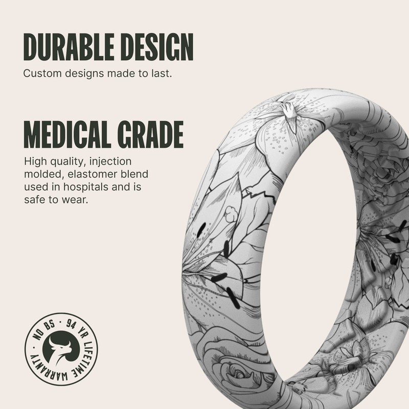 Groove Life Aspire Winter Rose Silicone Ring Breathable Rubber Wedding Rings for Women, Lifetime Coverage, Unique Design, Comfort Fit Ring - Size 9