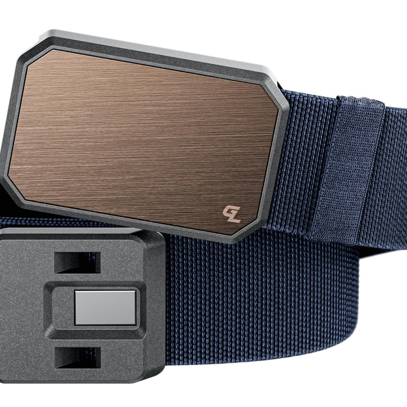 Groove Life Groove Belt OG Bronze/Abyss Navy - Stretchable Nylon Men's Belt with Magnetic Buckle – Adjustable, Comfortable, Work, and Everyday Wear – Size Medium (33-36")