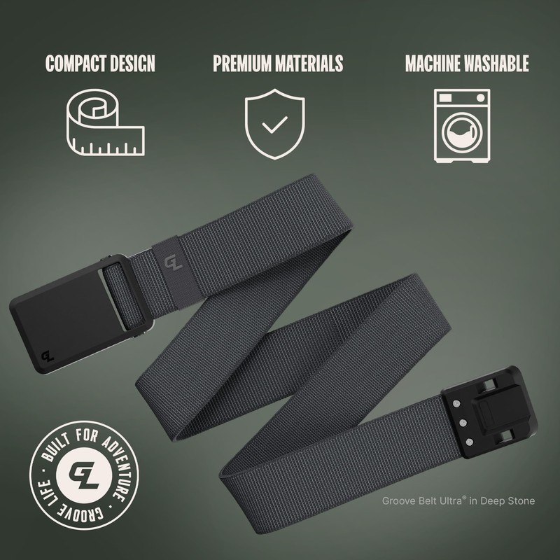 • AFFORDABLE PRICE; Easily go from the office to outdoors with the $39.95 Groove Belt Ultra. Its innovative locking bar, curved polymer buckle, and machine washable, thin webbing with the perfect amount of stretch ensures both comfort and style.