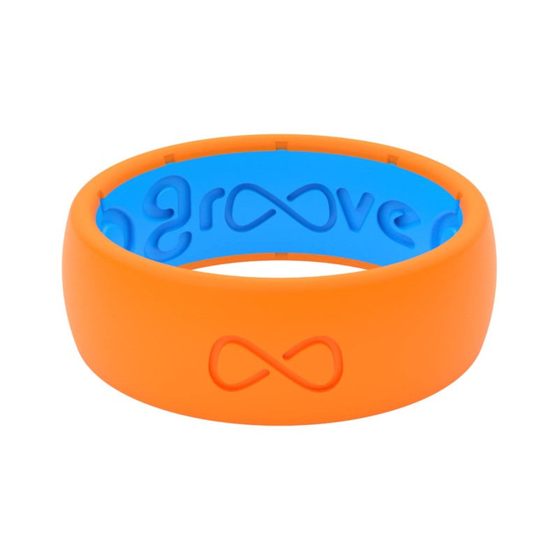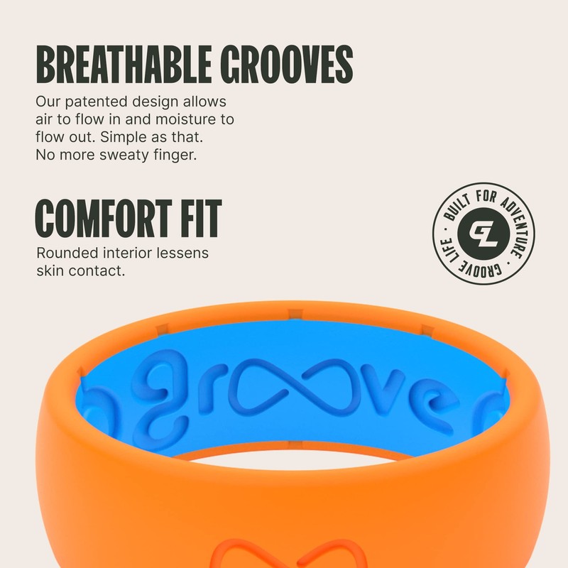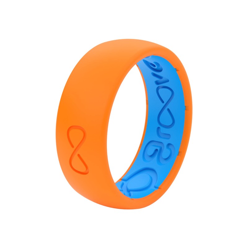 Groove Life Solid Blaze Orange/Blue Ring - Breathable Silicone Wedding Rings for Men, Lifetime Coverage, Unique Design, Comfort Fit Ring - Size 7