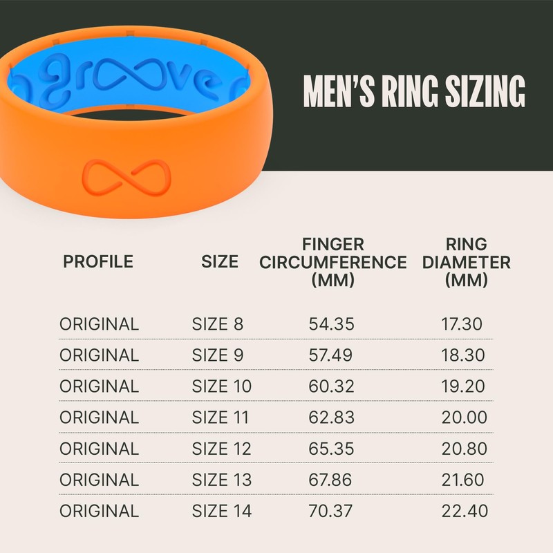 - SIZING - Made from 100% medical grade silicone that is not pre-relaxed, so you'll want to start off with a snug fit to allow for the extra room that comes once it's been worn regularly! Have a question about what size silicone ring you wear? Check out the sizing guide posted below under Product Guides and Documents. If you're in-between sizes, we recommend starting with the next whole size down. You can always call our customer service department for more assistance! (8mm wide)