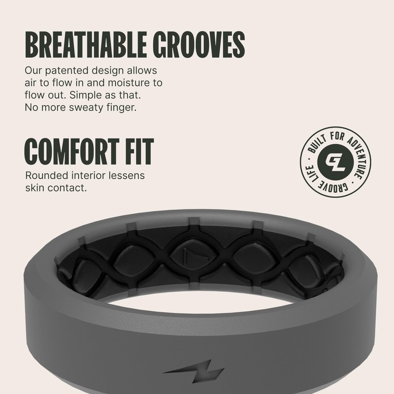 Groove Life Zeus Thin Storm Grey Ring - Breathable Silicone Wedding Rings for Women, Lifetime Coverage, Unique Design, Comfort Fit Ring - Size 9