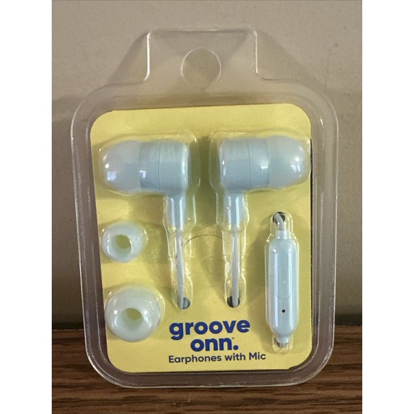Enjoy your music on the go with these Groove Onn earphones. Featuring a built-in microphone, these earbuds are perfect for taking calls while you're out and about. The soft silicone ear tips come in three sizes to ensure a comfortable fit, and the light blue color adds a fun touch to your music accessories.