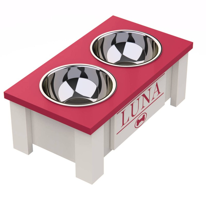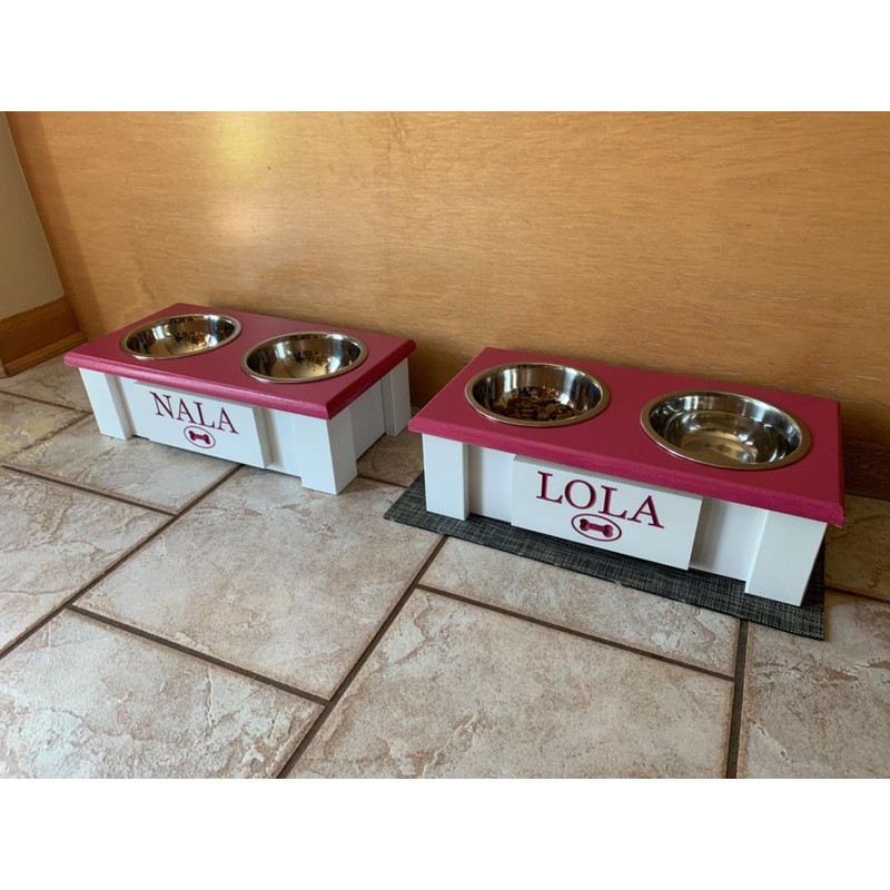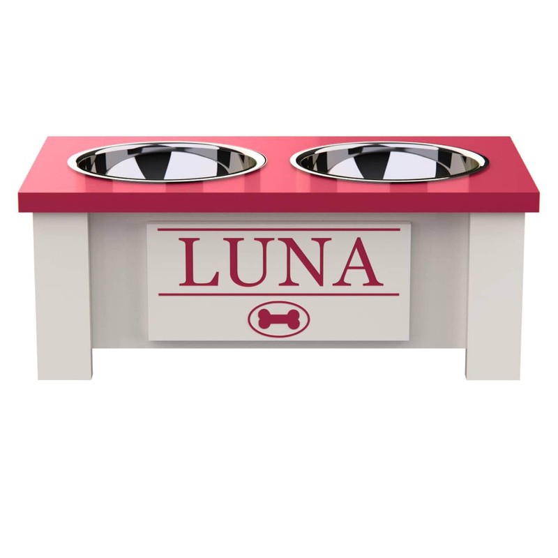 GrooveThis Woodshop - Personalized Elevated Dog Bowl Stand for Large, Medium, Small, X-Small Dogs - Stainless Steel Food and Water Bowls - Raised Dog Dish with Internal Storage (Small, Magenta)