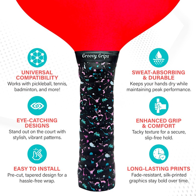 Groovy Grips Pickleball Paddle Grip - Stylish Tennis Grip Tape, Non-Slip Tennis Racket Grip for Pickleball and Tennis, Precut Badminton Racket Grip with Finishing Tape - (Galaxy Splash, Pack of 3)