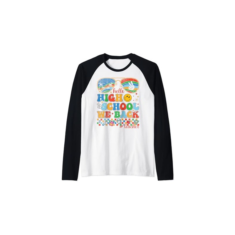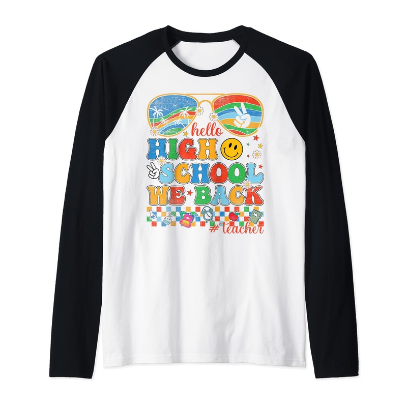 Groovy Hello High School We Back Sunglass Teacher Girls Raglan Baseball Tee