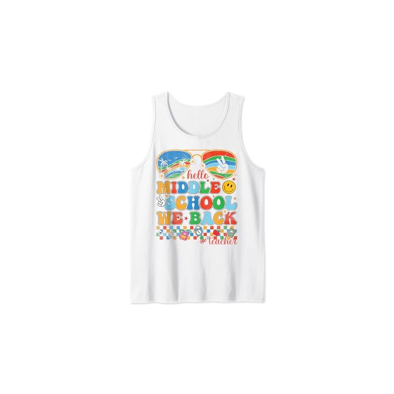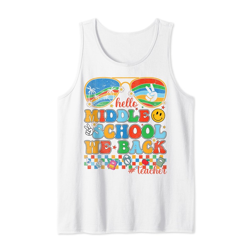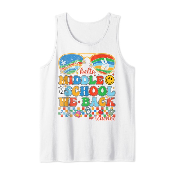 Groovy Hello Middle School We Back Sunglass Teacher Girls Tank Top