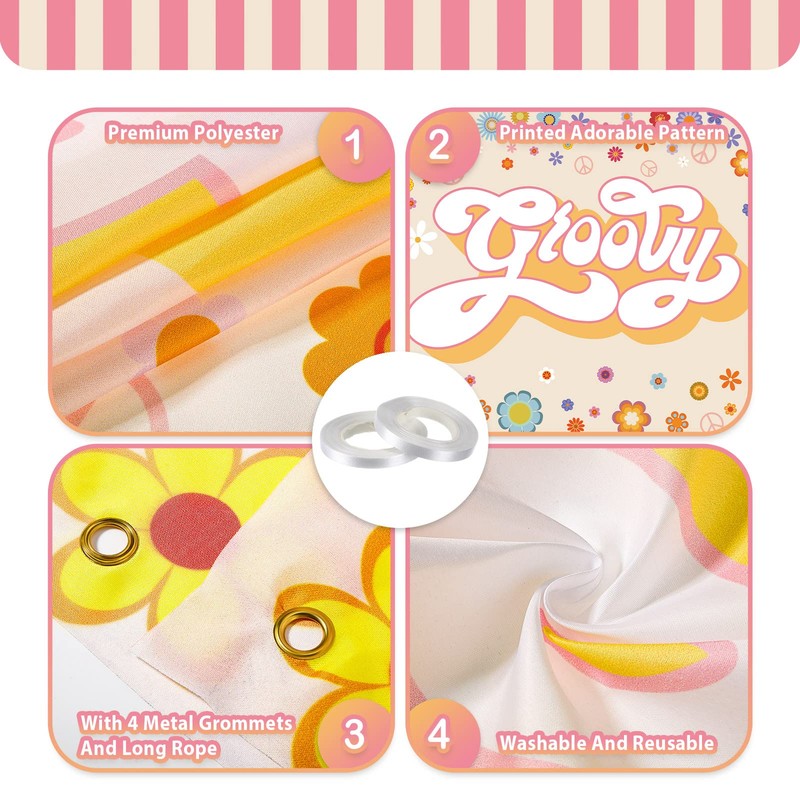 • Wide Applications: hippie photography background can be applied as a photo backdrop, party decoration, wall hangings, photo booth props, etc. to meet your diverse needs; It is an ideal addition to birthday parties, 60s themed parties,baby showers, hippie parties