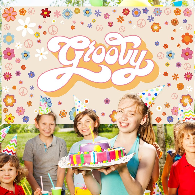 Groovy Party Backdrop Banner Hippie Birthday Two Groovy Party Decoration Daisy Flower Boho Party Photography Backdrop Groovy Party Supplies (7 x 5 ft)