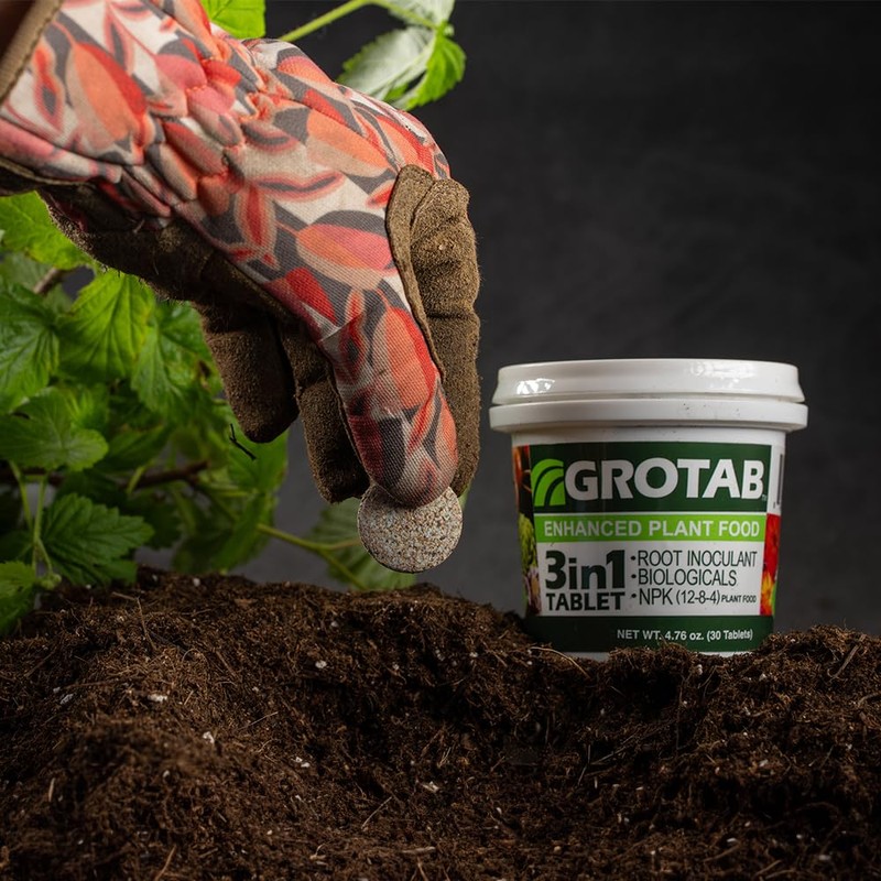 - Easy to Use Plant Fertilizer: Enhance plant growth with GROTAB! The 3-in-1 plant food tablets improve soil fertility, root establishment and nutrient uptake of plants. Conveniently use with indoor or outdoor plants; simply dig, drop and plant.