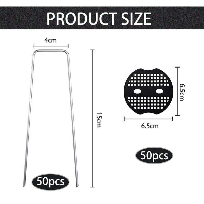 - Complete accessory set: our ground anchor for weed fleece set contains 50 robust ground anchors (100 x 40 mm) and 50 matching washers, ground anchor fleece is enough to meet the needs of large projects such as laying artificial grass or garden borders. The extra wide washers distribute pressure evenly and prevent sinking into soft surfaces.