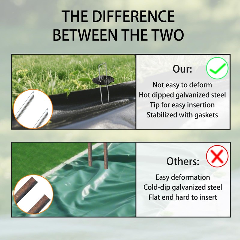 - High-quality materials and durability: Our ground anchor weed fleece is made of high-quality galvanised stainless steel with excellent rust resistance, especially suitable for use in harsh weather conditions. The reinforced surface coating of our ground hook prevents corrosion even in moisture, salt spray or extreme temperatures, making it ideal for year-round use in the garden or camping.
