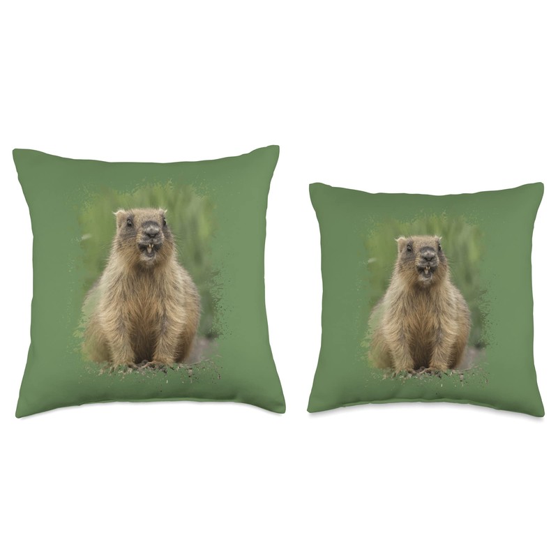 Groundhog Photo Woodchuck Splatter Art Tee Throw Pillow