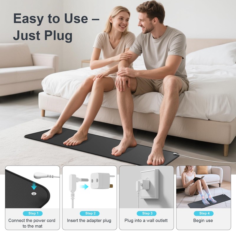 - ✅Simple to Use: Simply connect the mat to the grounding wire provided, plug it into a power outlet, and place your feet, arms, or any other body part on the mat for comfortable and practical use.