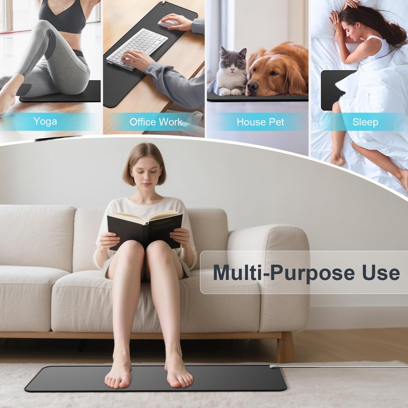Use it as a footrest at your desk, a meditation mat, a yoga aid, or even under your bedsheet— integrating grounding into work, relaxation, and sleep for wellness.