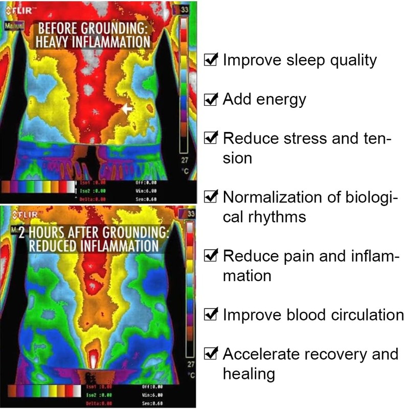- HEALTH BENEFITS BY GROUND: The Earthing Mat passes the natural earth energy (negative charge) via skin contact. Neutralises free radicals, reduces inflammation, pain and promotes better sleep. Use the Grounding Bed Sheet daily for more balance and energy.