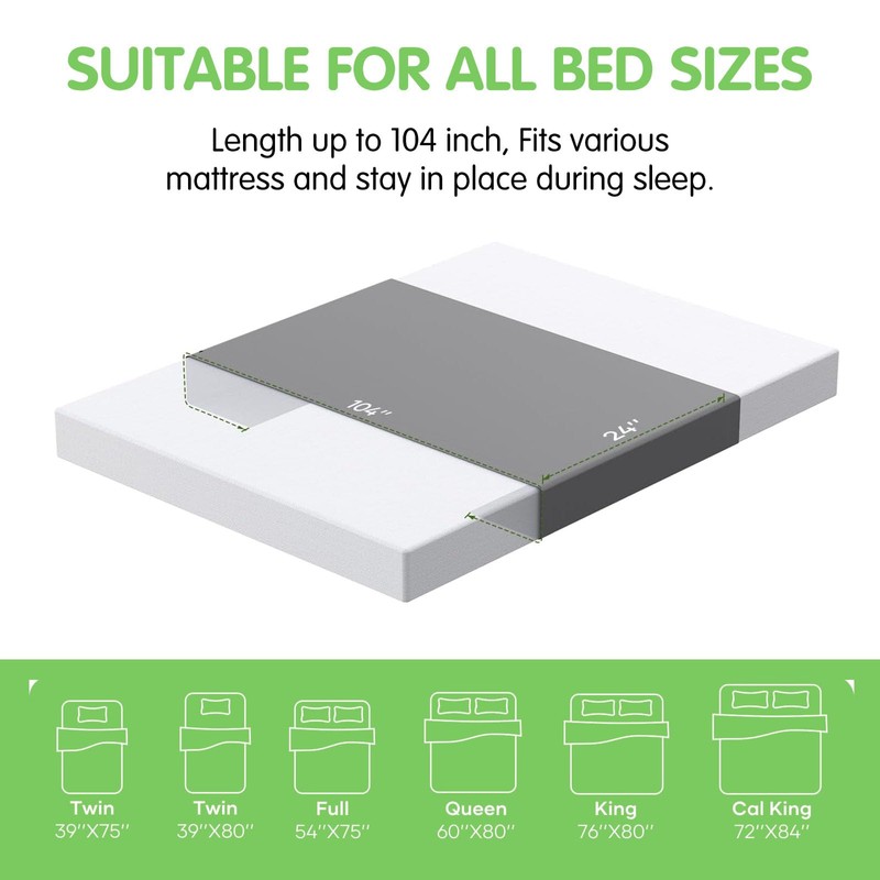 • 【Long enough for the size】The grounding sheet is 24"x104", which fits all mattress sizes, King /Queen/ Full /Twin /California King etc. You don't have to worry about picking the wrong size anymore. You can put it horizontally so 2 people can feel the grounding, and of course you can put it vertically for single person use.