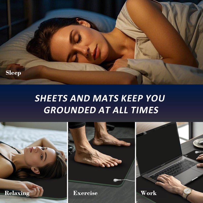 - Grounding Benefits: The grounding sheets and grounding mat can transfer the trace negative charge carried by the earth to your body through the grounding wire,giving you a deeper, higher quality sleep, improving sub-health, increasing energy, relieving stress, muscle pain and tension, and improving blood circulation,which is suitable for users of all ages, and is especially suitable for people who have poor sleep quality.