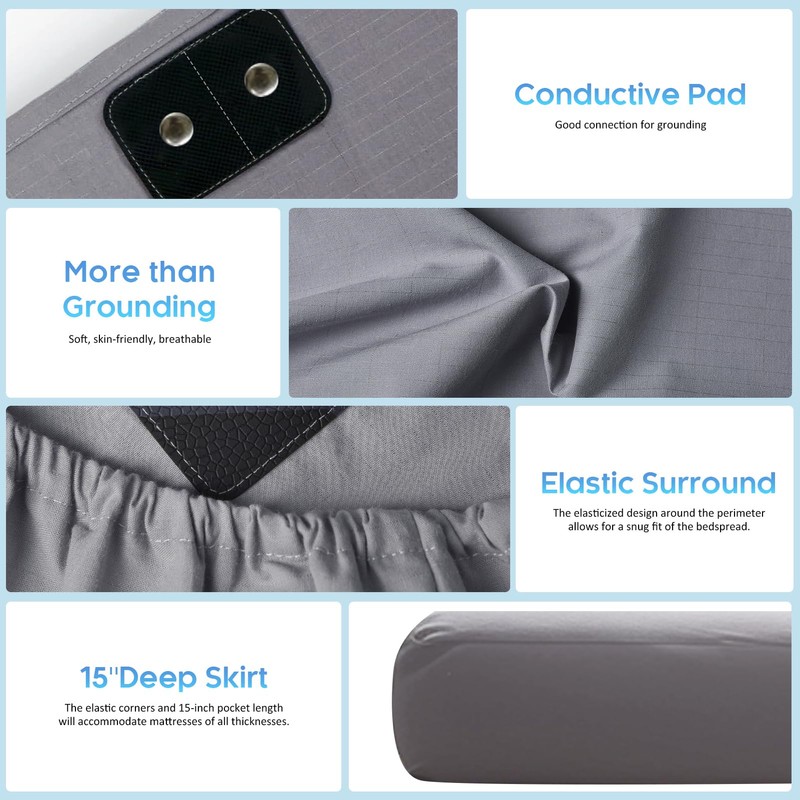 - A Long-awaited Present: We have two regular sizes, the grounding sheets king and grounding sheets queen.There are also other products such as grounding mat for bed, grounding blanket and so on.This is a great gift for parents and friends who don't have a deep sleep, have anxiety due to stress from work and school, suffer from joints/knees/backs, this grounding sheet will help them sleep deeper and reduce pain!