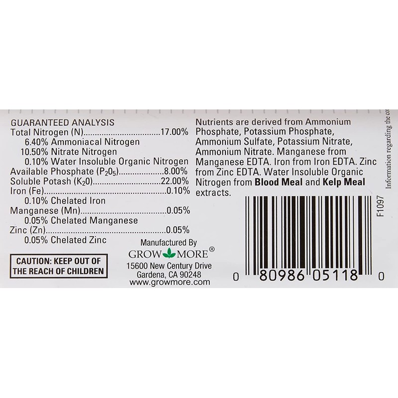 Grow More 5118 Bromeliad Tillandsia Food 17-8-22, 1.25-Pound