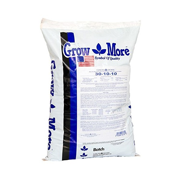 Grow More Fertilizers are formulated to supply sufficient amounts of extra nutrients for high yields. High solubility, purity and the special forms of nitrogen, phosphorus and potassium make Grow More Fertilizers the ideal product. A high nitrogen formula for spring and early summer applications, it provides an early nitrogen boost for fast, healthy plant growth.