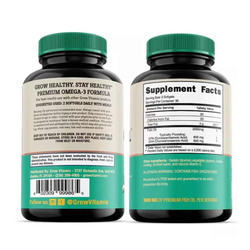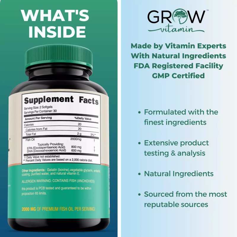 Grow Vitamin BEST TRIPLE STRENGTH Beyond Omega 3 FISH OIL PILLS 2000mg HIGHEST POTENCY