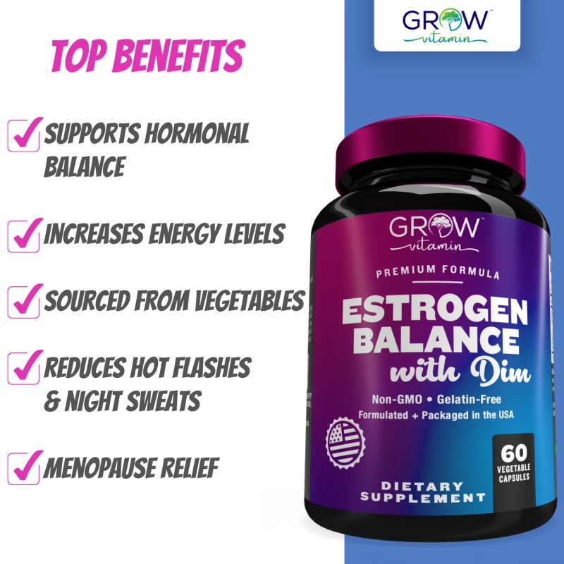 - POWERFUL WOMEN'S DIM COMPLEX SUPPLEMENT: Grow Vitamin's DIM can provide relief for a wide range of female problems that results from menopause and Premenstrual syndrome (PMS) such as low mood, hormonal imbalance, skin acne and hot flashes.