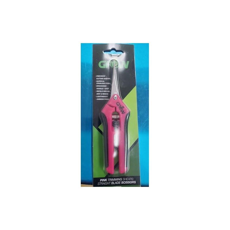 Grow1 Pink Trimming Shears Straight Blade Scissors Stainless Steel Precision Pruners with Ergonomic Ambidextrous Handle for Leaf and Stem Trimming