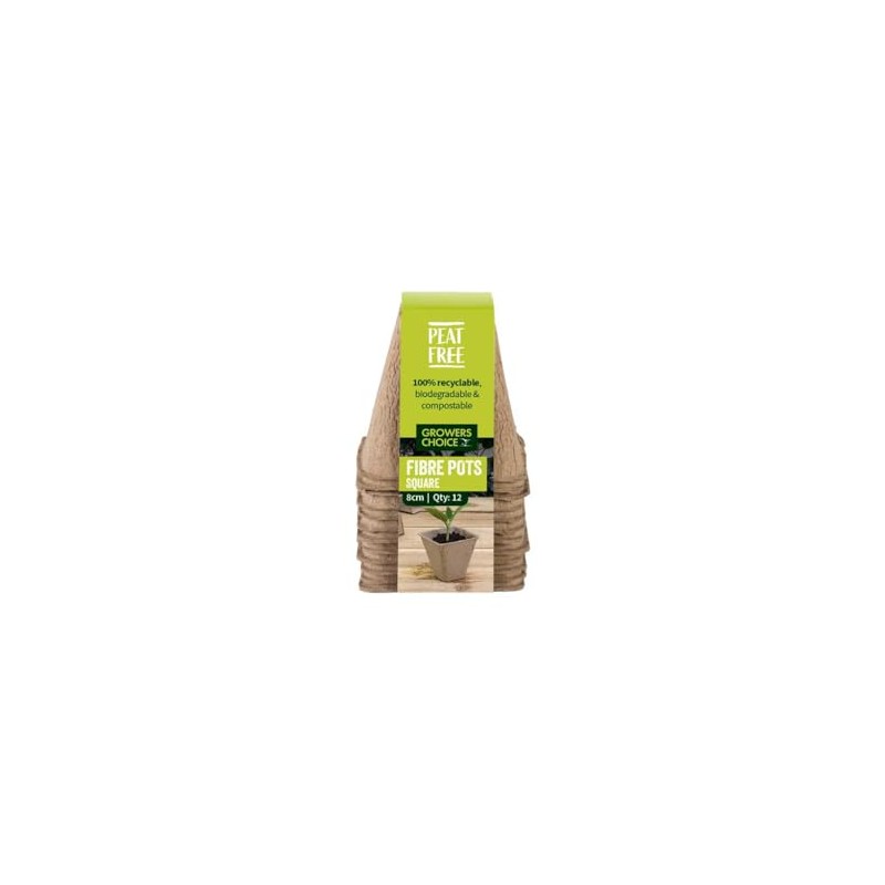 Growers Choice Peat Free Square Fibre Pots, 8 cm Square, Twin Pack of 24, Biodegradable, For Seedlings and Cuttings